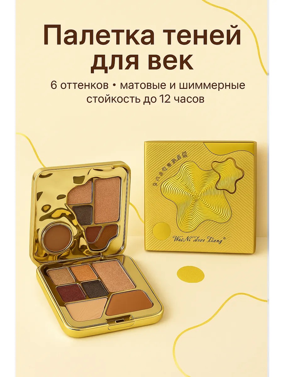 Палетка теней для век — стильное решение для идеального макияжа глаз. В наборе сочетаются матовые и сияющие оттенки: от нежных нюдовых до глубоких тёмных, позволяя создавать как повседневные, так и вечерние образы. Компактный формат с зеркалом удобно брать с собой в сумочку.