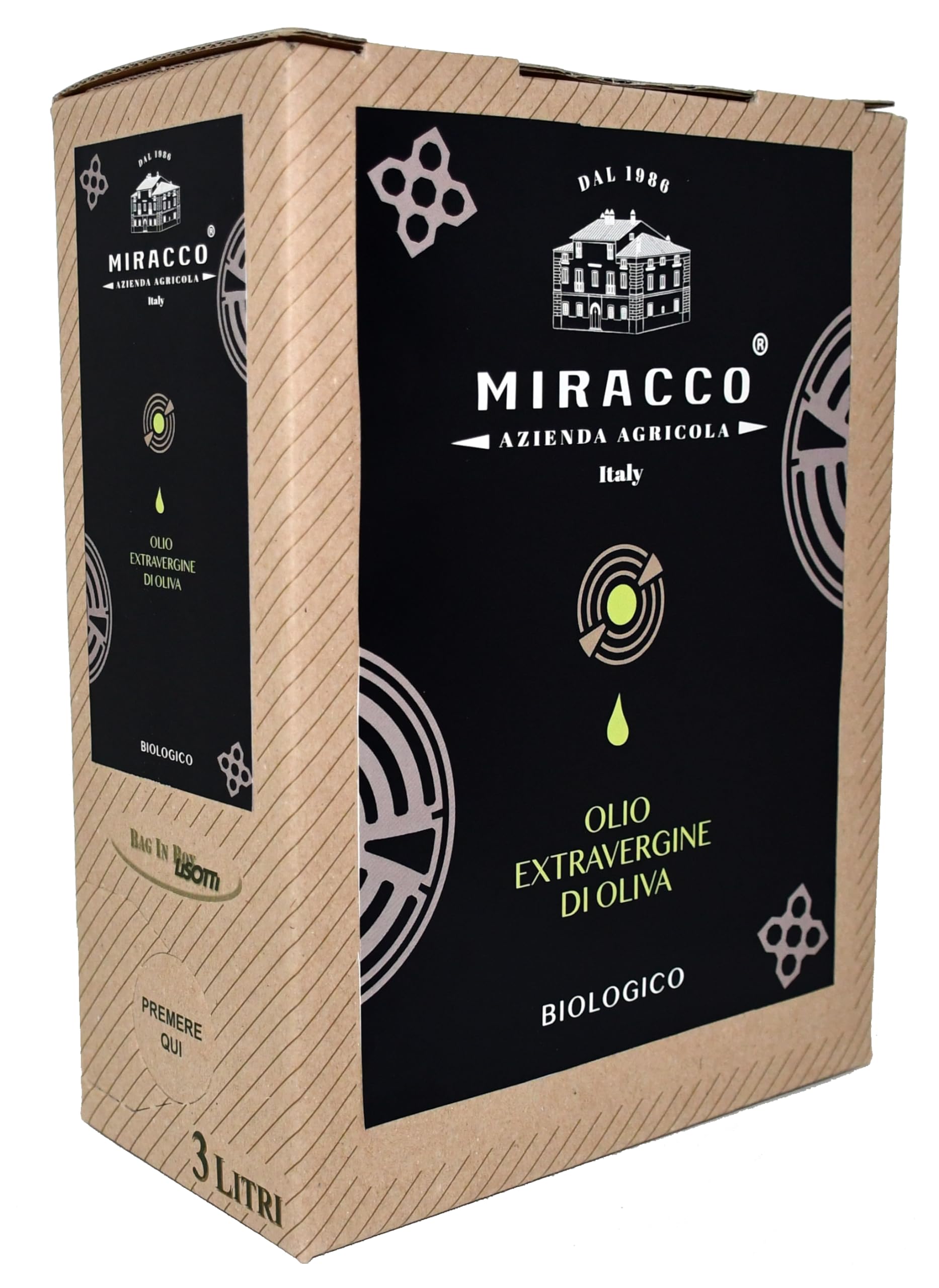 MIRACCO MIRACCO - 100% Italian Organic Calabrian Extra Virgin Olive Oil - Cold Extracted Bag in Box 3 Lt.