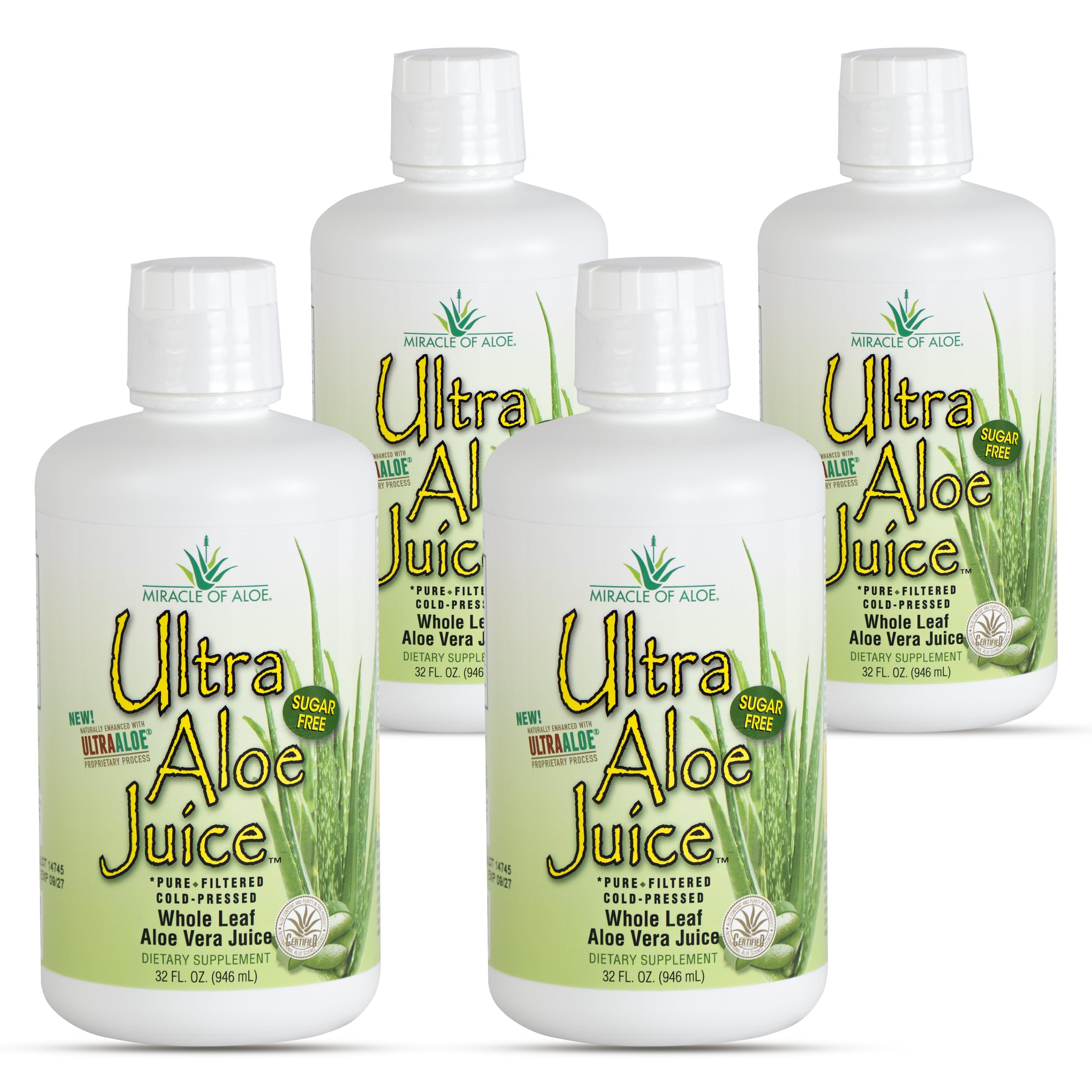 Miracle of Aloe Ultra Aloe Vera Juice, 1 Qt. 4 Pack, Whole Leaf, Pure, Filtered, Certified for Content and Purity (Gallon)
