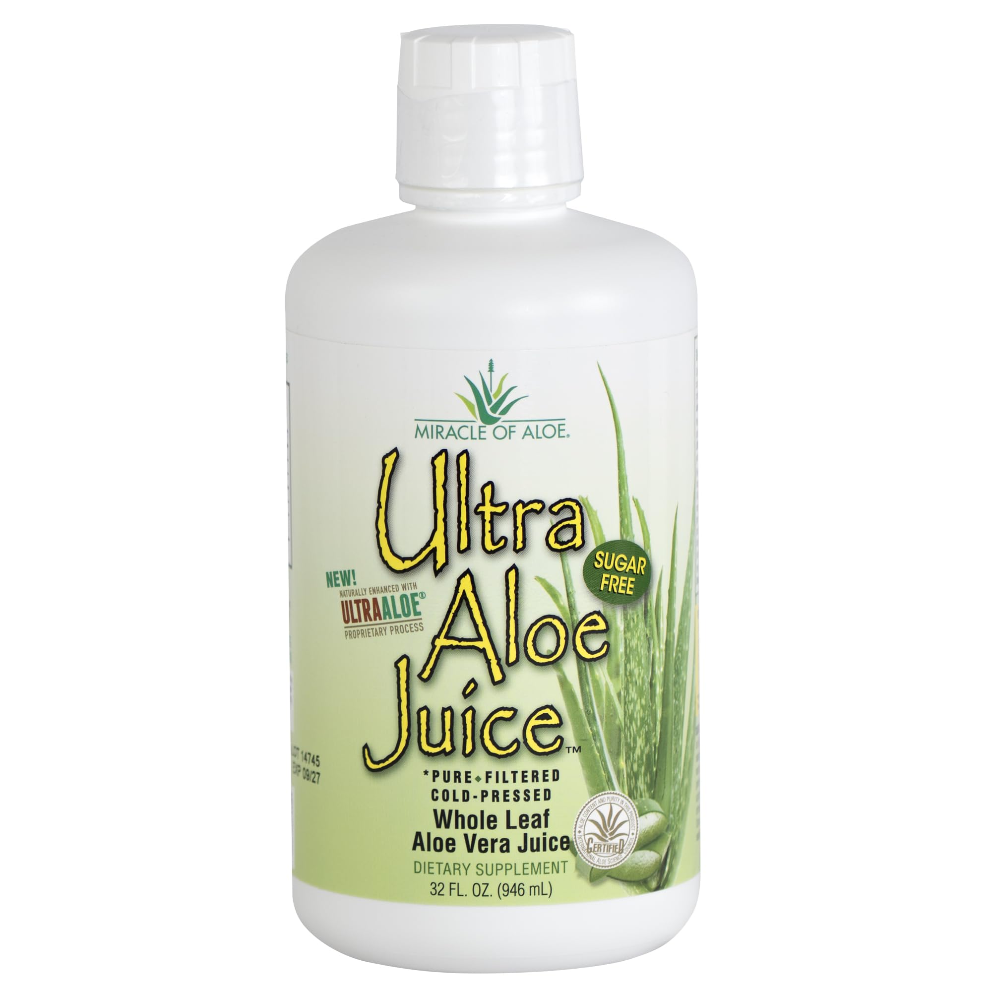 Miracle of Aloe Ultra Aloe Vera Juice Whole Leaf Pure Filtered Certified for Content and Purity 1 Qt