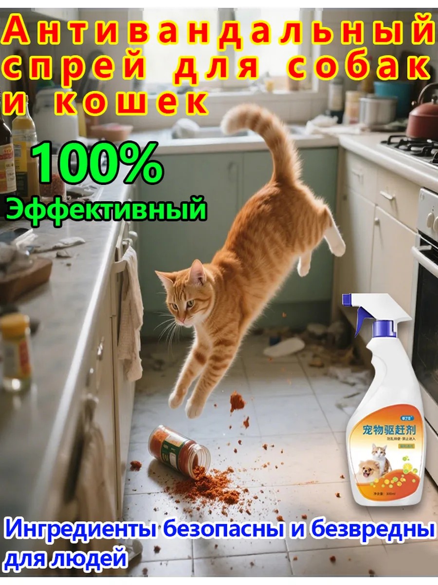 Антивандальный спрей от вредных привычек для кошек и собак - это эффективное и безопасное отпугивающее средство, которое поможет отучить питомца портить обувь, одежду, аксессуары или предметы интерьера квартиры. Активным компонентом продукта является горькая добавка - денатониум бензоат, которую используют, чтобы отучить ребенка грызть ногти. Такой компонент станет отличным ограничителем для животных с их чувствительным обонянием. Отпугиватель отлично подойдет для дрессировки и воспитания котенка или щенка, помогая им выработать правильные привычки. Состав можно использовать для ухода за любыми поверхностями, которые вы хотите защитить от зубов или когтей питомца. Он поможет предотвратить нежелательные кошачьи метки и отпугнет животное от походов в туалет в неположенных местах, к примеру, на мебель или ковер, поможет приучить к лотку. Способ применения: встряхните флакон, равномерно распылите жидкость на поверхность и подождите, пока она высохнет, образовав защитный слой. Обрабатывайте поверхность по мере необходимости, но не чаще одного раза в три-четыре дня. Важно помнить, что нельзя допускать попадание средства антидира на игрушки, миски или другие предметы, которые использует ваш питомец. Если это произошло, просто промойте их водой. Состав продукта включает в себя только натуральные и безопасные компоненты, благодаря чему средство абсолютно безопасно как для крупных, так и для мелких пород животных. С помощью этого данного товара вы сможете сохранить обивку мебели, деревянные полы кухни, любимые ботинки и другие предметы в хорошем состоянии и предотвратите нежелательные повреждения от питомца. Спрей способствует приучению к лотку, благодаря чему вы сэкономите время и силы при уборке дома.