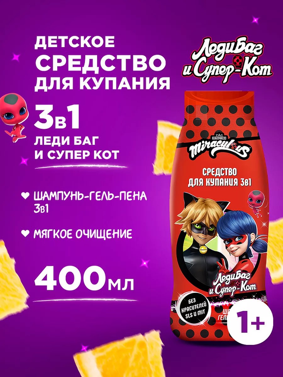 Шампунь гель детский 3в1 Леди Баг 1+, 400мл