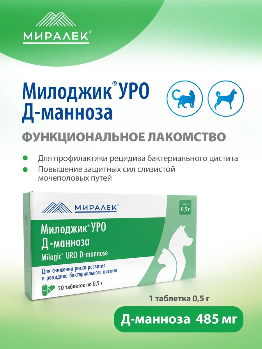 Миралек Милоджик Уро Д-манноза лечение цистита у собак, 30 таблеток