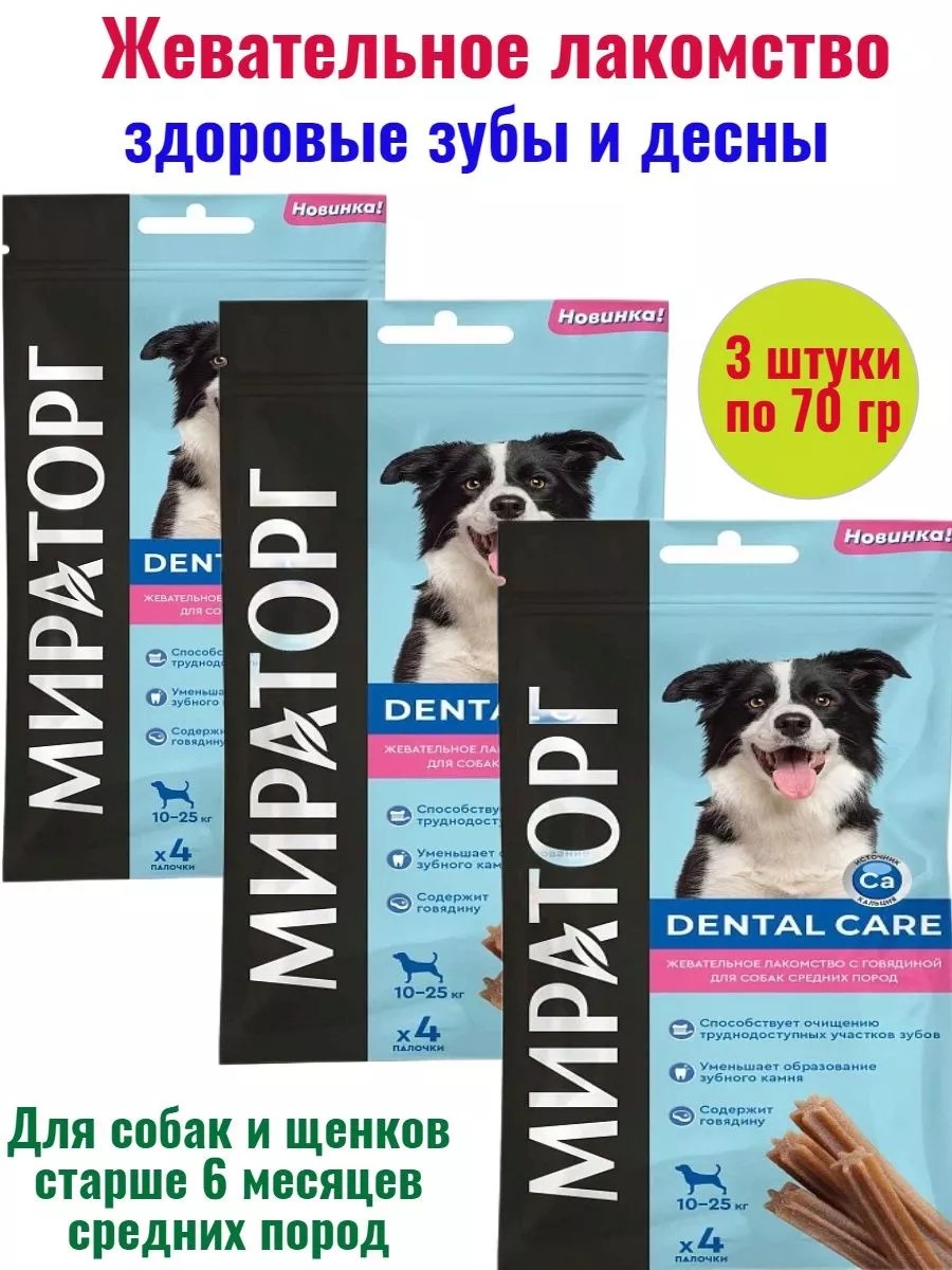 Жевательные лакомства Мираторг Dental Care (дентал)– это линейка жевательных лакомств, из мяса и мясных ингредиентов собственного производства, которые эффективно очищают зубы и массируют дёсны питомцам.ПреимуществаНатуральный состав – лакомства приготовлены без добавления хлора, перекиси водорода, усилителей вкуса.100% гарантия качества и безопасности – Мираторг единственная на рынке компания, которая контролирует все этапы производства лакомств.Производство в России – натуральное мясо собственного производства, фрукты и овощи для здоровья питомцевТехнология бережной сушки – Мираторг производит лакомства по уникальной технологии бережной сушки с сохранением всей пищевой ценности. Подходит для взрослых собак и щенков старше 6 месяцев. Суточная норма – не более одного лакомства в день. Состав: