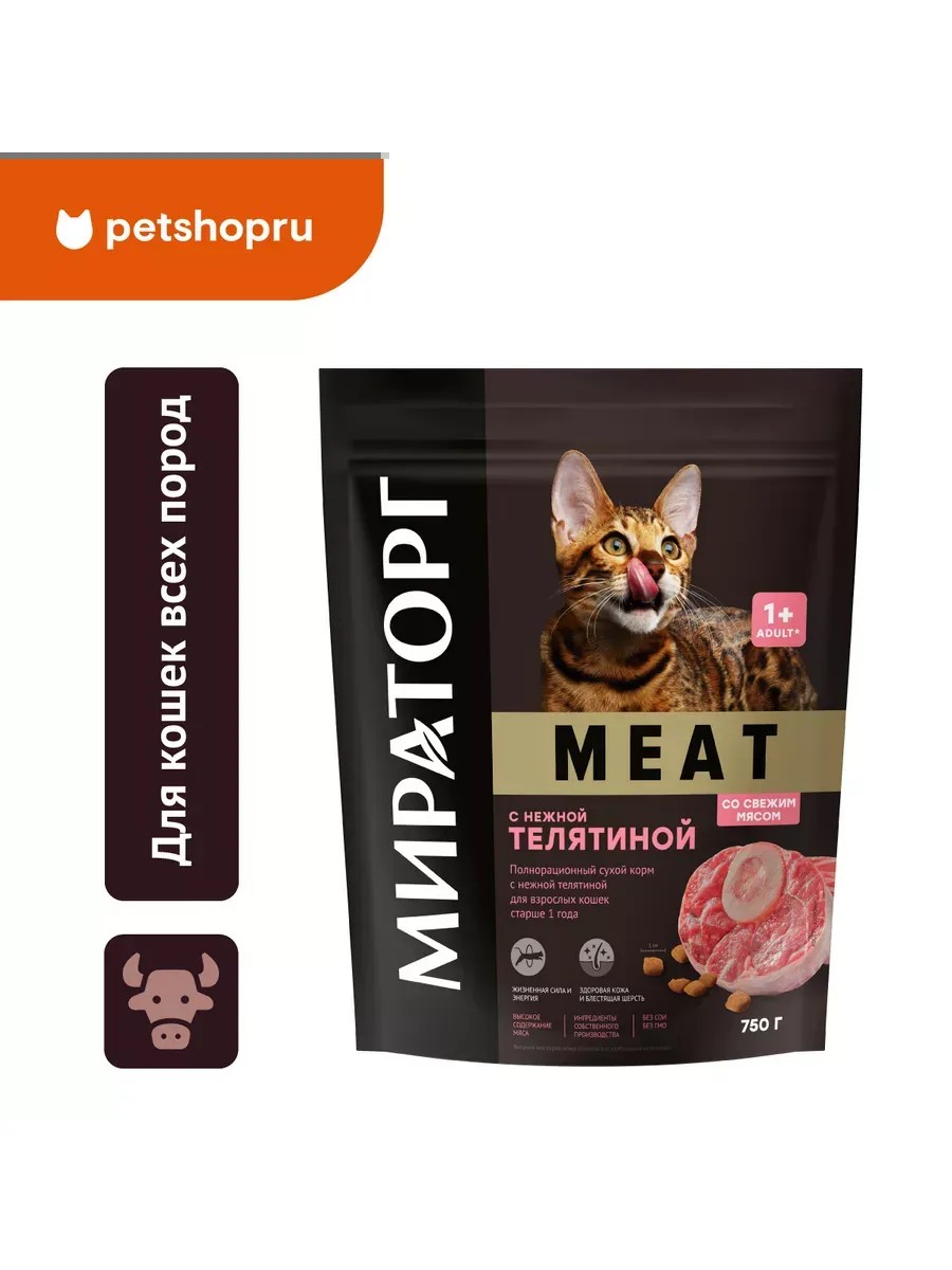 Мираторг Корм сухой для взрослых кошек всех пород,телятина,750г