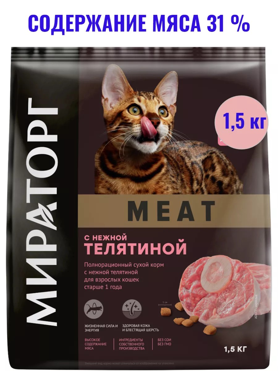 Мираторг Корм Meat с нежной телятиной для взрослых кошек 1,5 кг