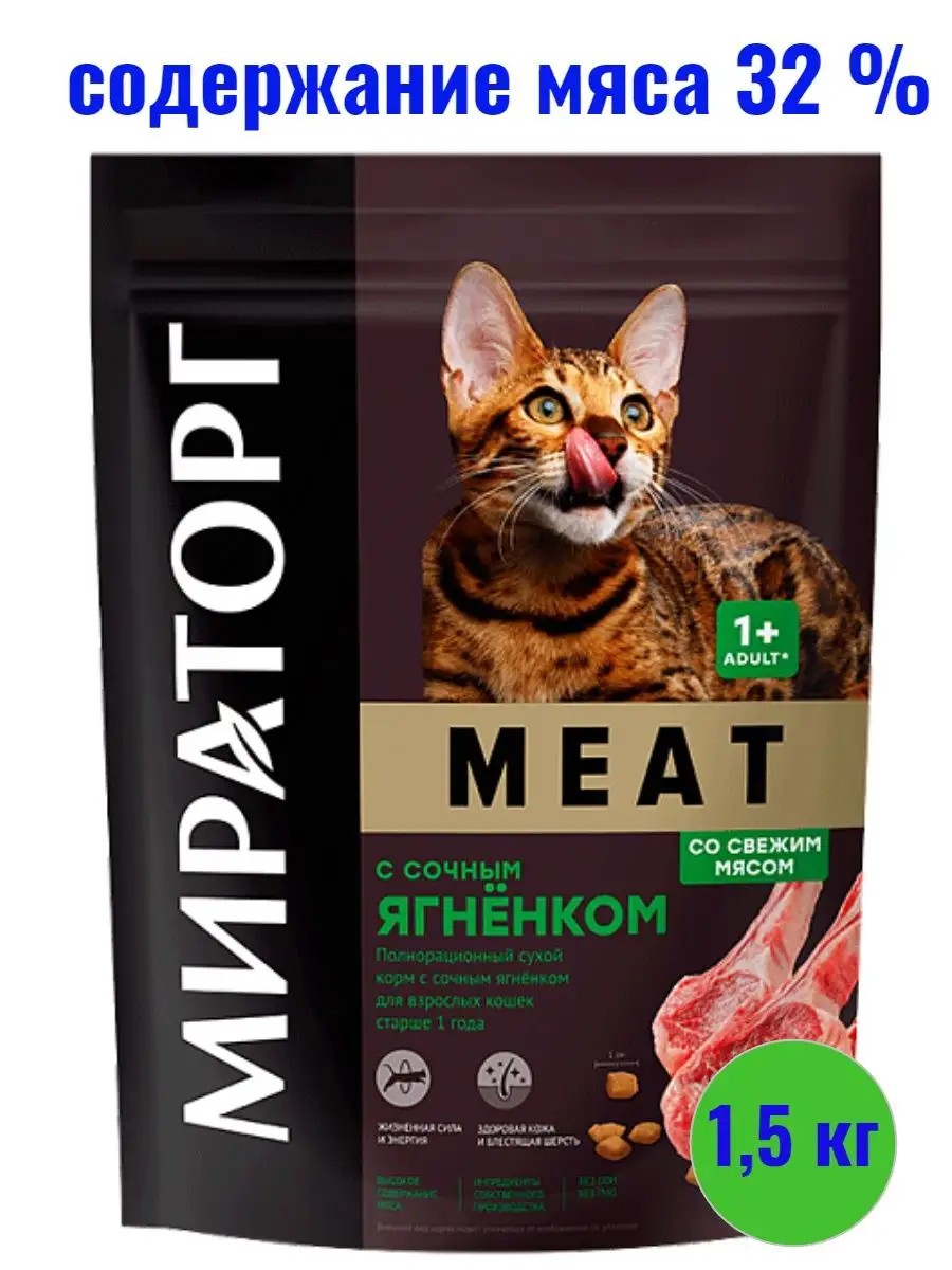 Мираторг Корм Meat с сочным ягненком для взрослых кошек 1,5 кг