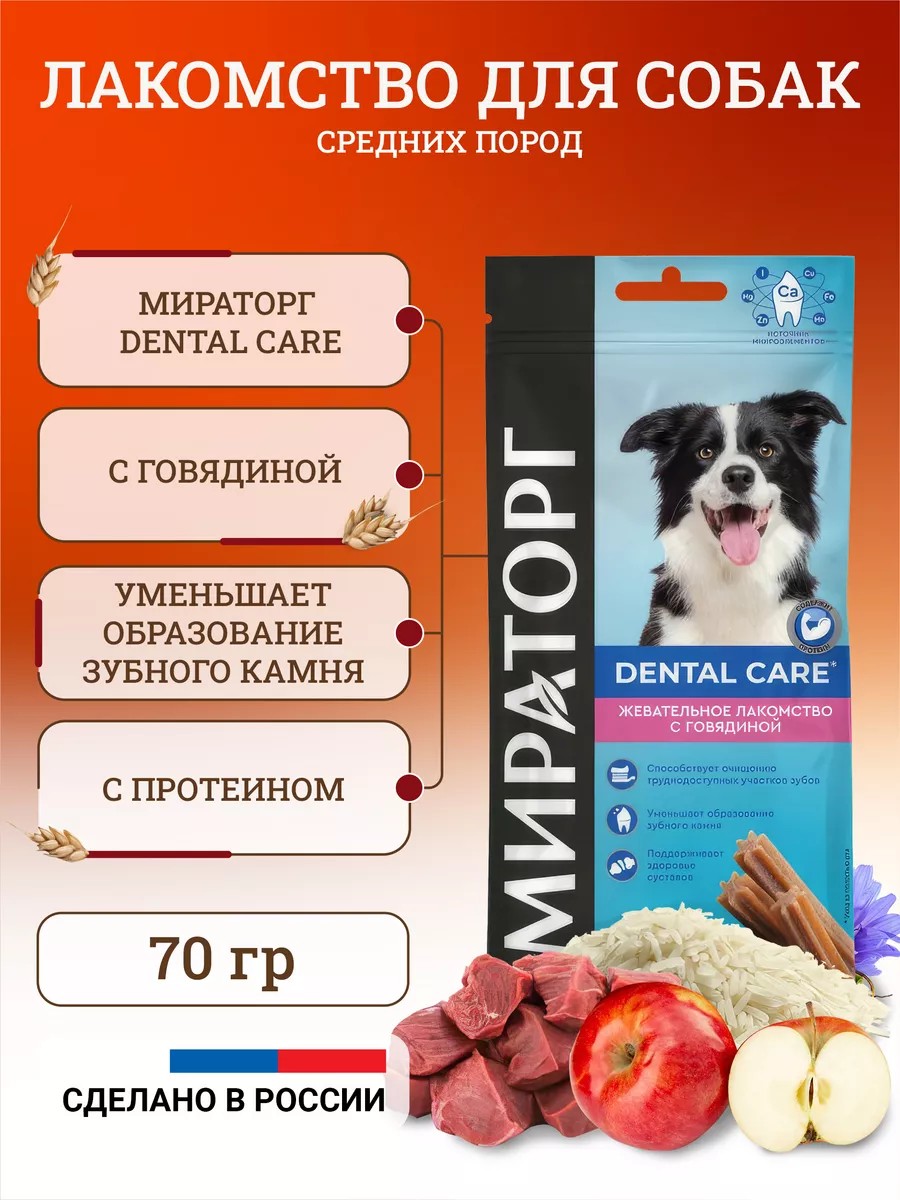 Мираторг Дентал лакомство для собак средних пород, c говядиной, 70 г