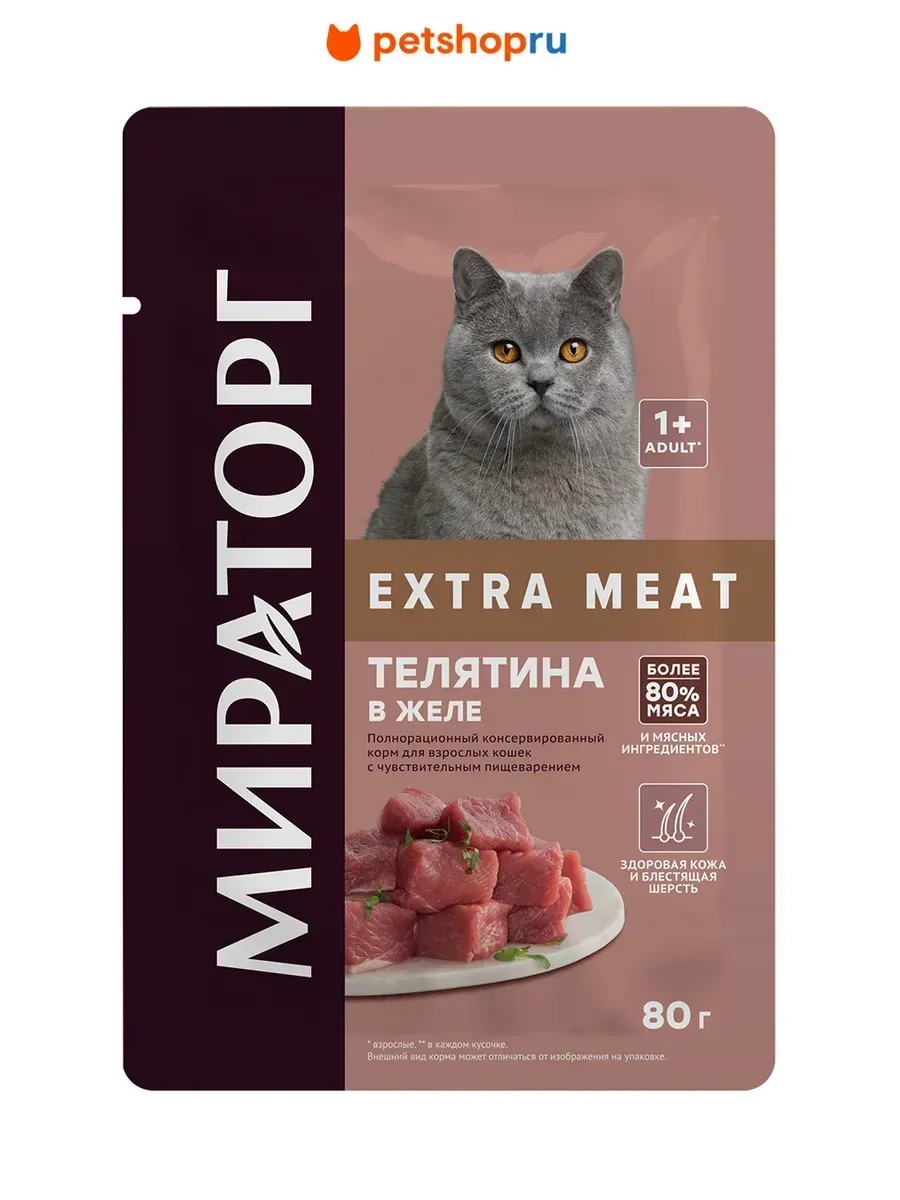 Мираторг Паучи для кошек с чувствительным пищ. с телятиной, 80 гр.