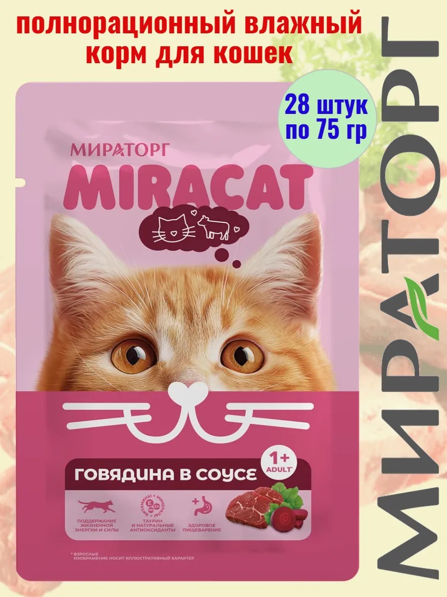 Мираторг Корм влажный Miracat для кошек с говядиной 75 гр 28 шт