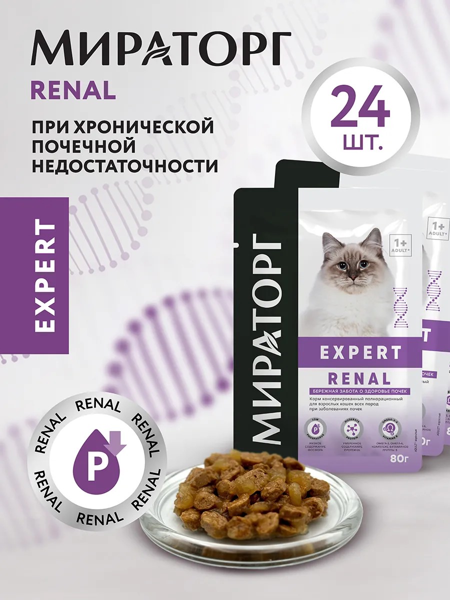 | Полное наименование товара | Влажный корм для кошек Expert Renal 80 г х 24 шт |