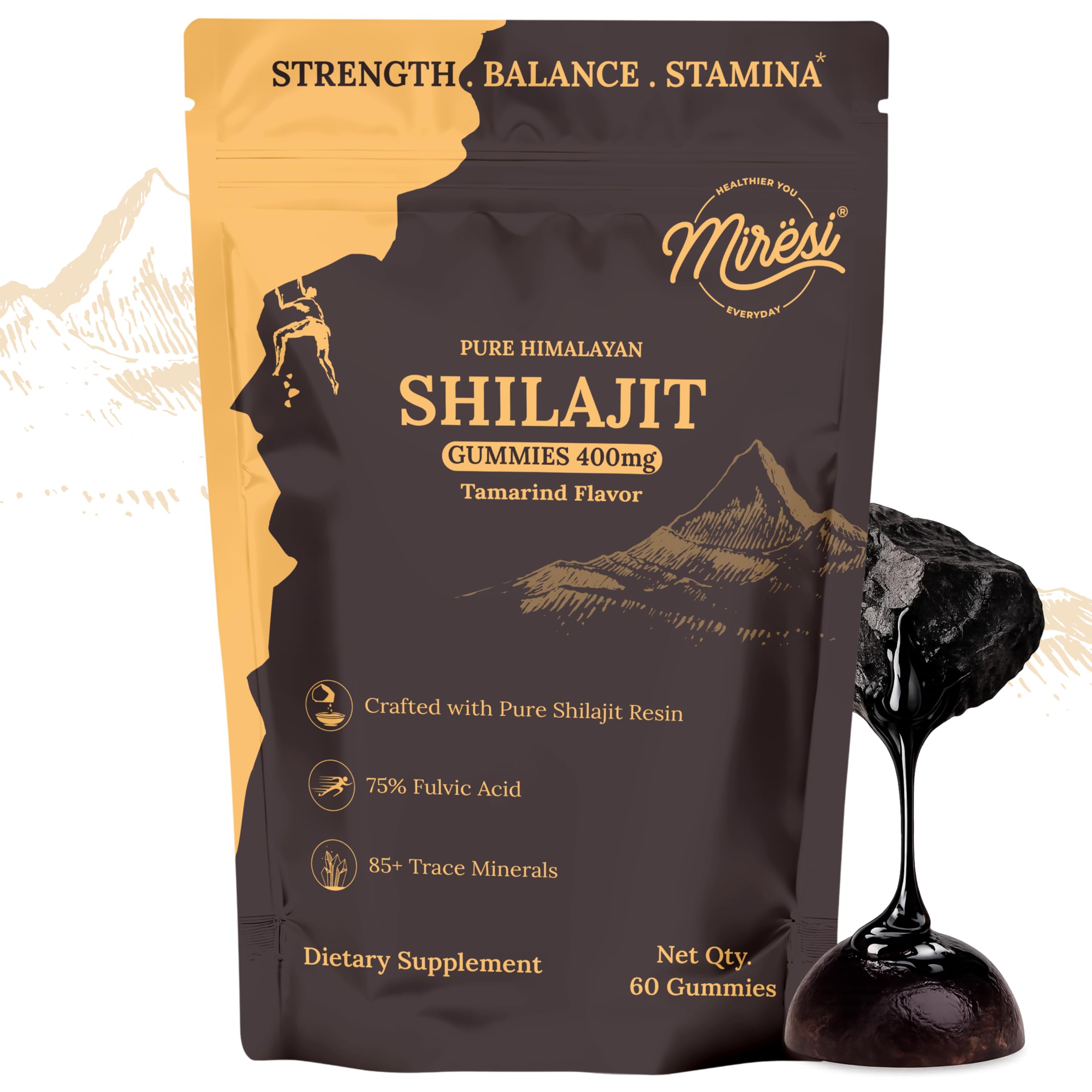 Miresi Himalayan Shilajit Gommes - Tamarind Flavor | Riche en acide fulvic & 85+ Trace Minerals | Boosts Energy Stamina Focus & Immunity | V g talien et sans gluten | 60 comptes