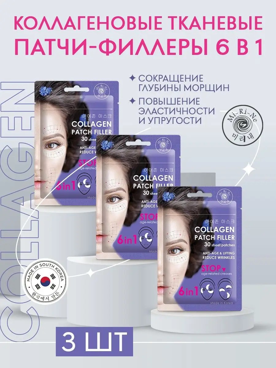 MiRiNe Коллагеновые тканевые патчи 6 в 1, 3 шт х 25 г, (90 патчей)