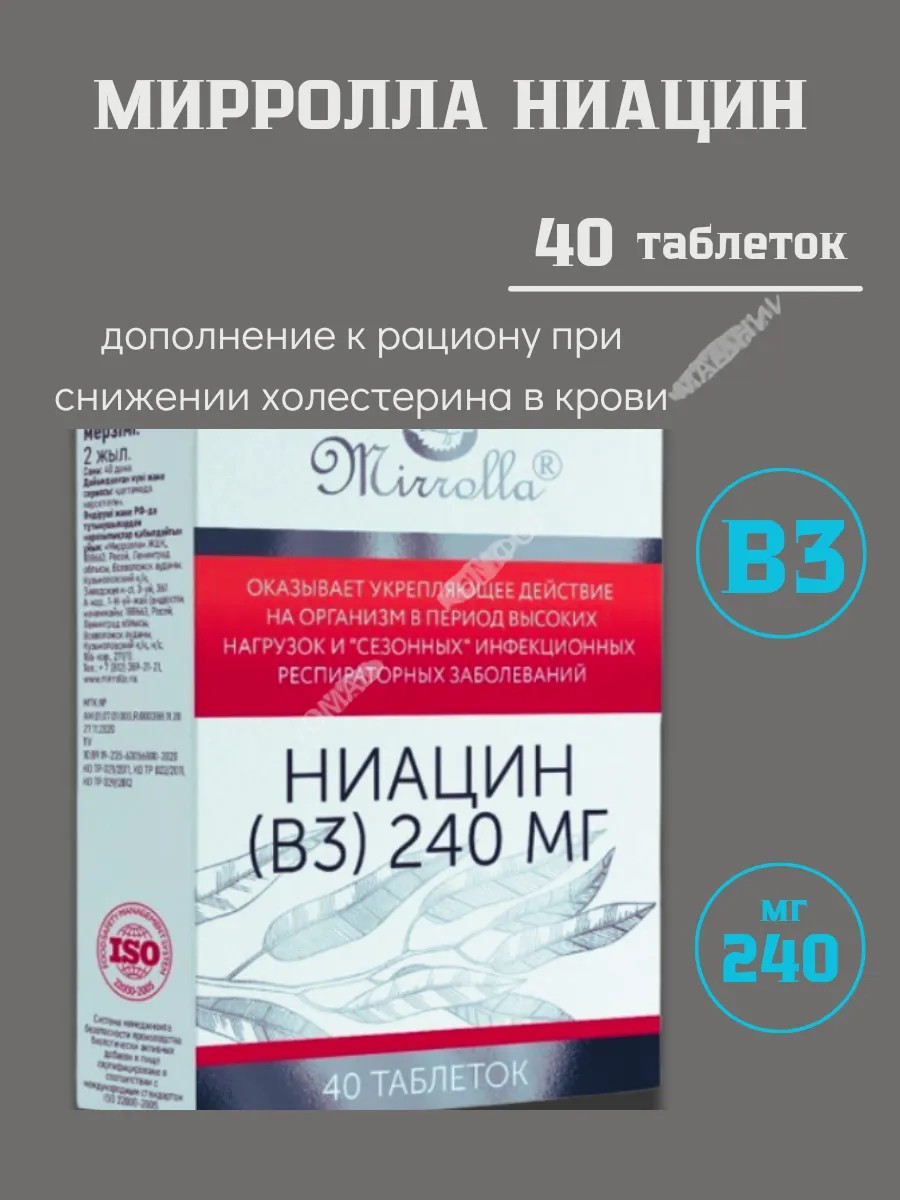 | Комплектация | мирролла ниацин (в3) 240мг n40 табл; 1 шт |