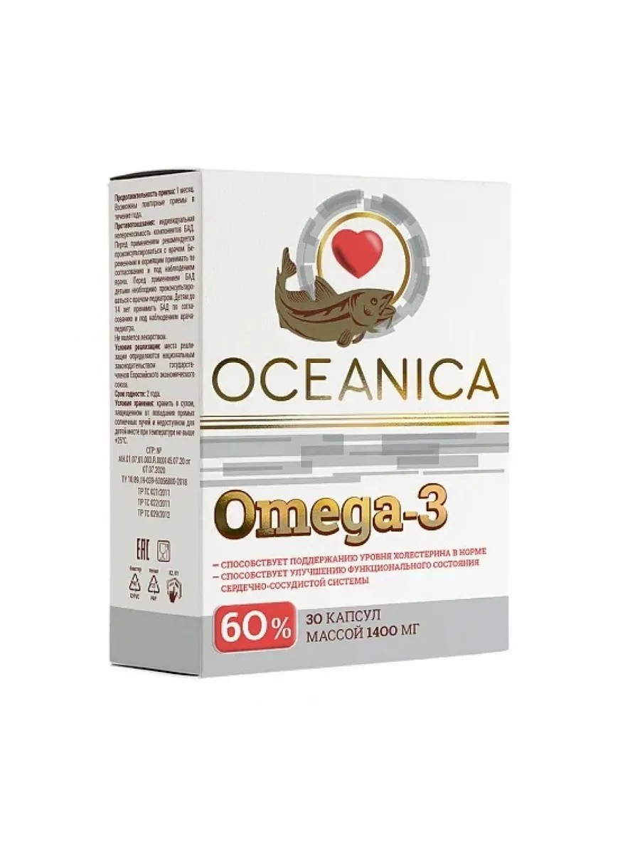 | Trade name | biologically active food supplement "Oceanica Omega 3 - 90%" (capsules weighing 320 mg, 620 mg, 700 mg, 1000 mg, 1400 mg, liquid in bottles of 30 ml, 50 ml, 60 ml) |