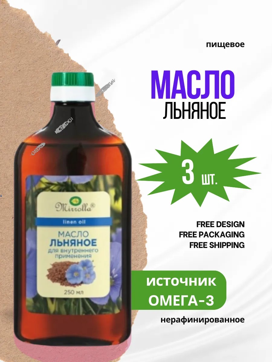 | Комплектация | масло льняное мирролла 250мл; 3 шт |