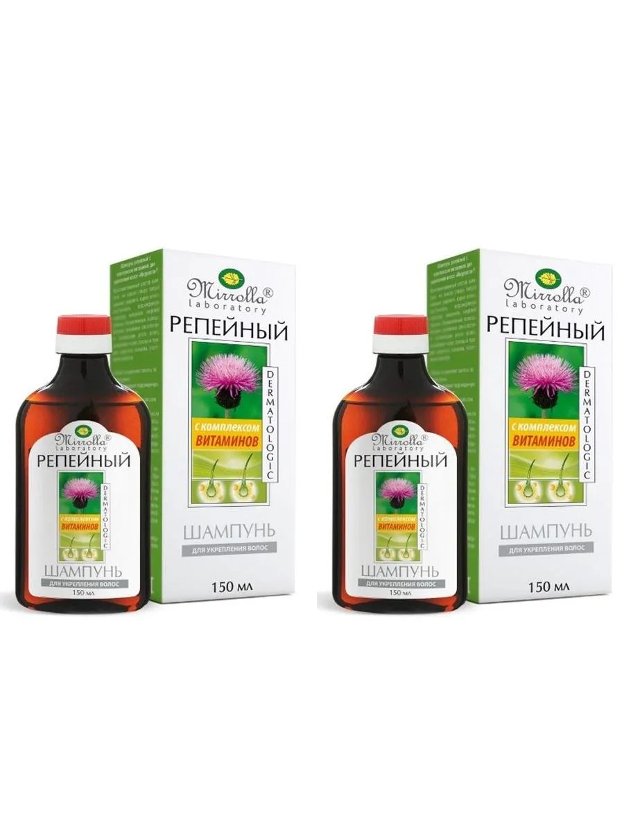 МИРРОЛЛА ШАМПУНЬ РЕПЕЙНЫЙ С ВИТАМИНАМИ 150МЛ. укрепление и восстановление волос, придает блеск и здоровый вид шампунь для волос комплекс витаминов В5, Н, А, отвар корня лопуха, масло жожоба,