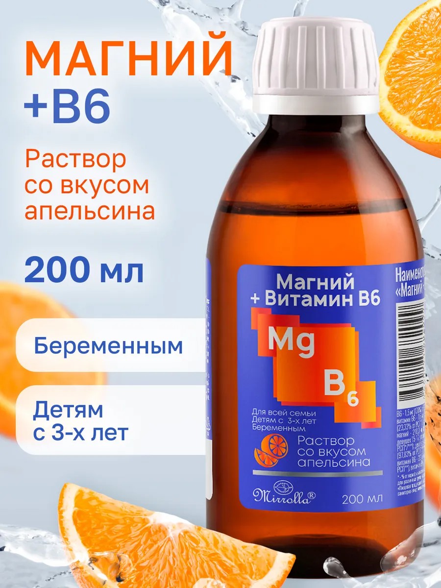 mirrolla Магний + В6, раствор со вкусом апельсина, 200 мл