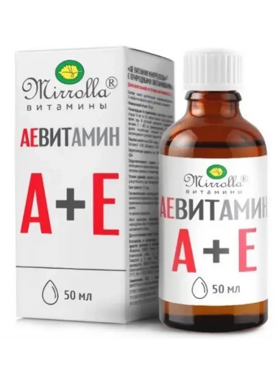 Mirrolla АЕ витамин с природными витаминами - это биологически активная добавка (БАД) к пище - комплекс, рекомендованный в качестве дополнительного источника витаминов А и Е.