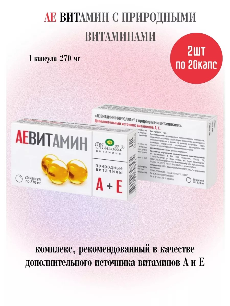 АЕ ВИТамин с природными витаминами «Мирролла» - комплекс, рекомендованный в качестве дополнительного источника витаминов А и Е.