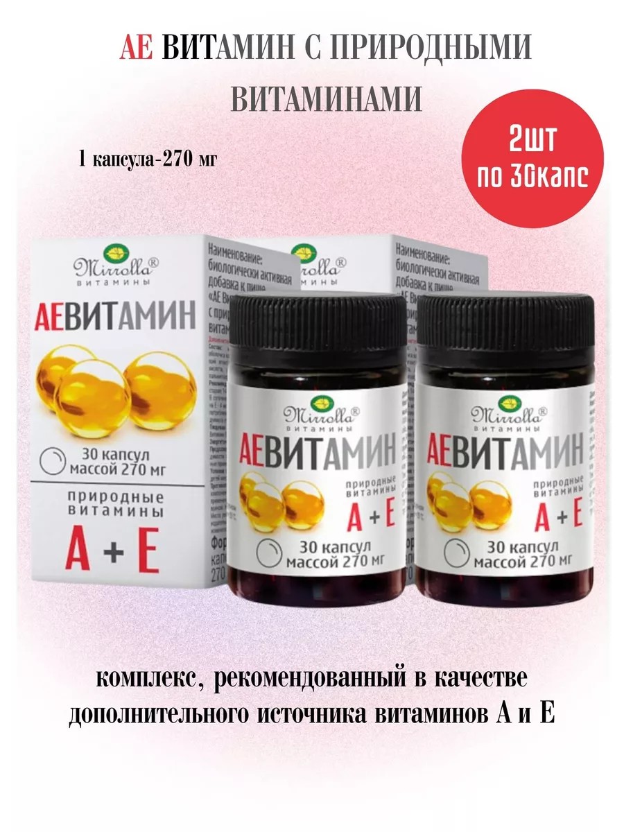 АЕ ВИТамин с природными витаминами «Мирролла» - комплекс, рекомендованный в качестве дополнительного источника витаминов А и Е.