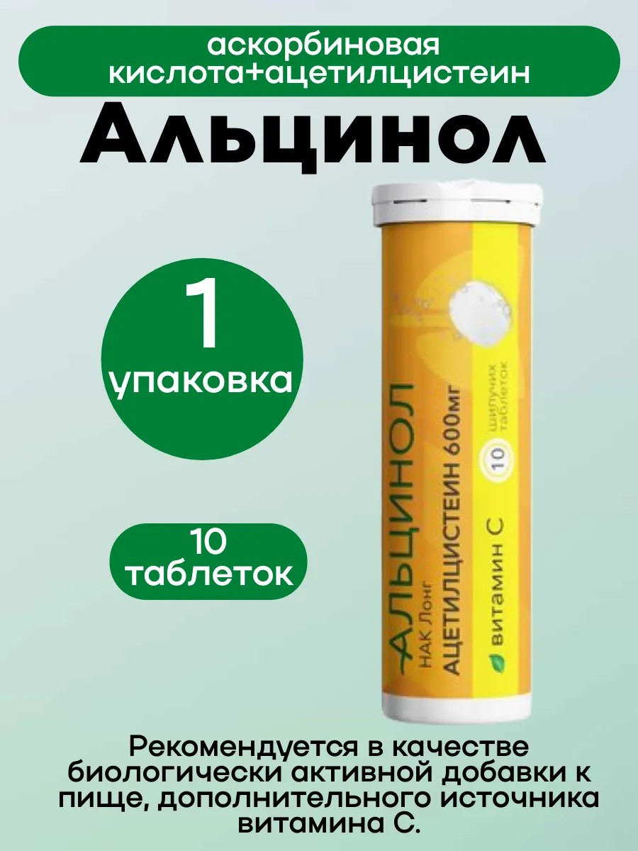 Альцинол – это эффективная биологически активная добавка, обеспечивающая организм необходимым количеством витамина С и ацетилцистеина. В составе продукта - 600 мг каждого компонента. Использование Альцинола, шипучих таблеток с лимонным вкусом, позволяет улучшить состояние дыхательной системы, обеспечивает антиоксидантную защиту и поддержку иммунной системы. Рекомендуется для взрослых и детей старше 14 лет. Продукт легко растворяется в воде, что делает его прием удобным и приятным. Если вы ищете дополнительный источник витамина С и эффективное муколитическое средство, шипучие таблетки Альцинол - отличный выбор.