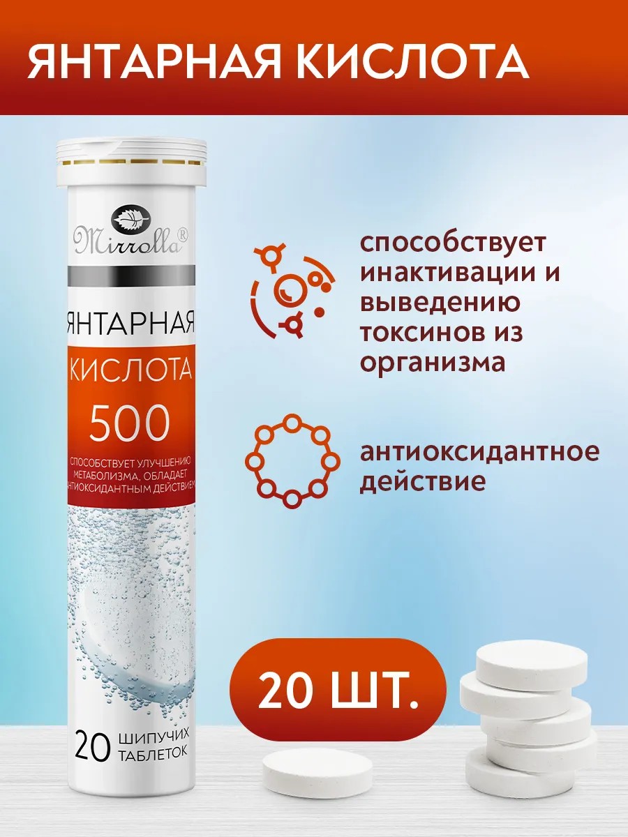 Янтарная кислота для иммунитета 20 шипучих таблеток 500 мг