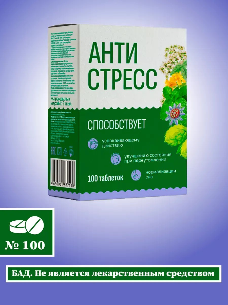 | Комплектация | Таблетки Антистресс 100шт - 1уп. |
