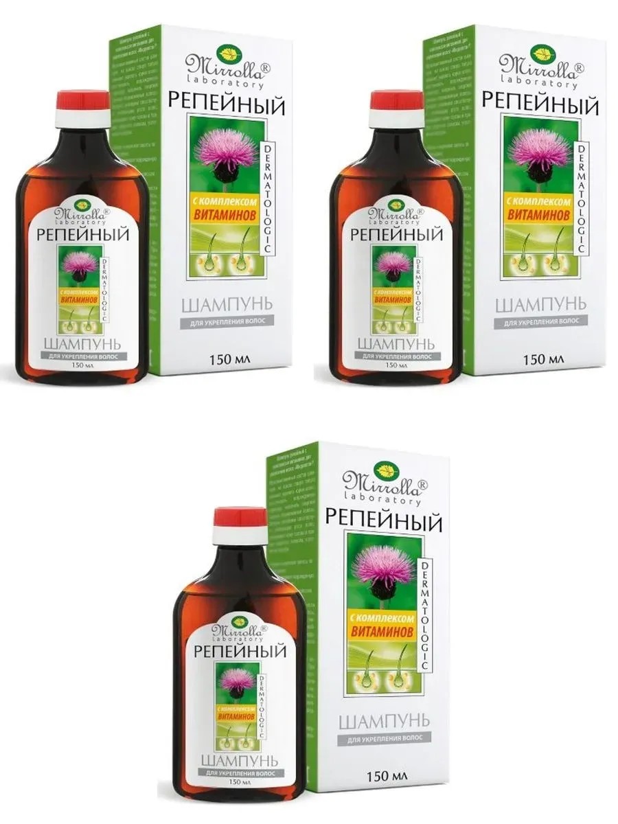 mirrolla мирролла шампунь репейный с витаминами 150мл 3 шт