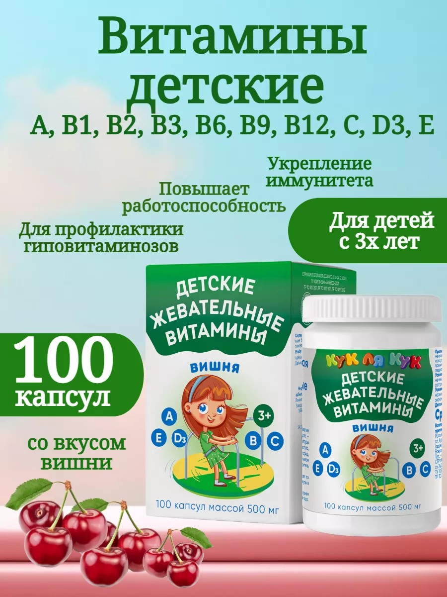 Жевательные витамины Кук ля Кук со вкусом вишни Мирролла являются рекомендуемой биологически активной добавкой к пище для детей от 3-х лет. Они содержат витамины С и Е, цинк и селен - все это очень важные компоненты для поддержания здоровья и иммунитета детей.