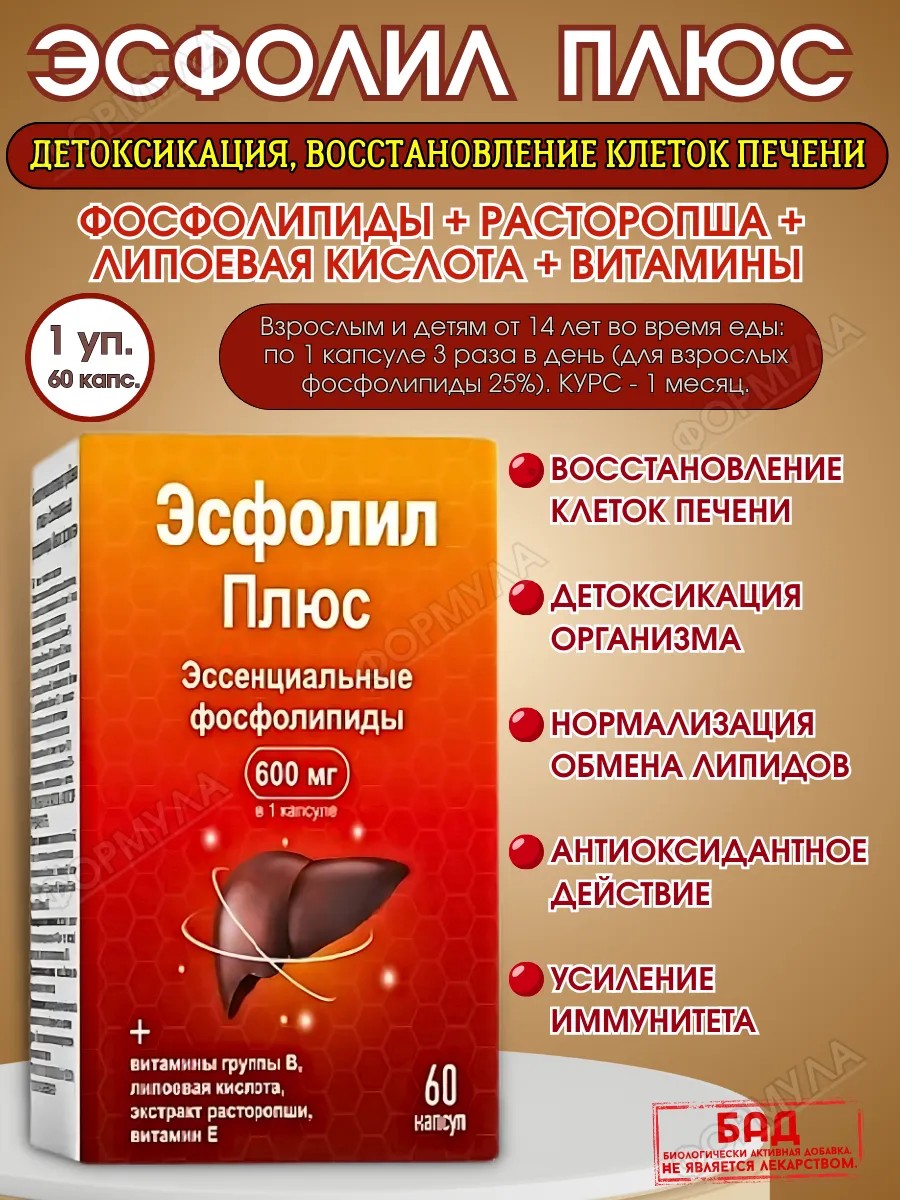 | Комплектация | эсфолил фосфолипиды плюс капс. n60; 1 уп |