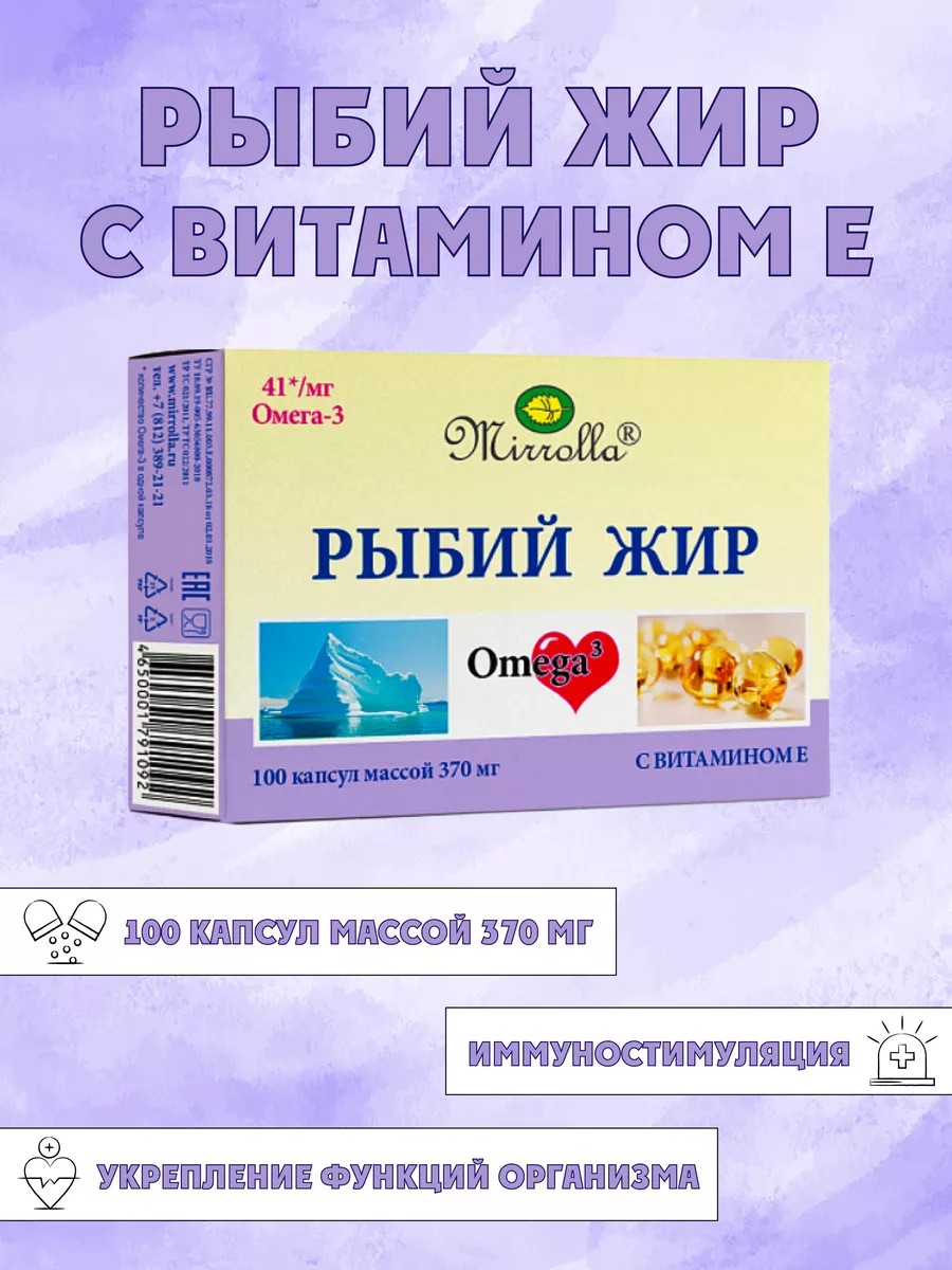 | Trade name | biologically active food supplement "Mirrolla Fish Oil with Vitamin E" (capsules weighing 370 mg, 700 mg, 1300 mg, liquid in bottles from 30 ml to 1000 ml) |