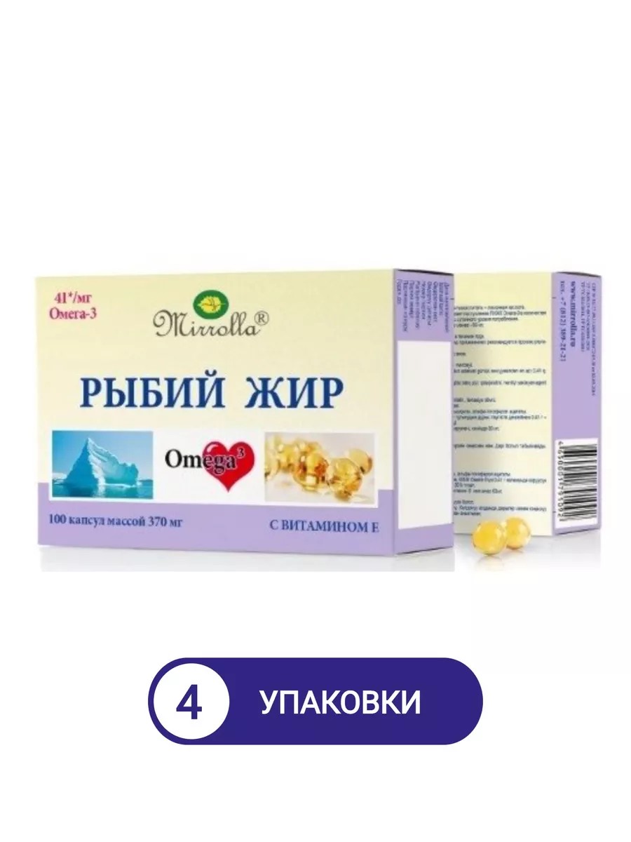 Рыбий жир Миррола с витамином Е - это биологически активная добавка (БАД) к пище, который продается в капсулах. Продукт производится из жира норвежского лосося и отвечает европейскому стандарту качества и безопасности. Является источником Омега-3 кислот (в т.ч. эйкозапентаеновой кислоты, докозагексаеновой кислоты), которые играют важную роль в функционировании организма и поддержании здоровья человека. Ещё содержит витамин Е - природный антиоксидант. Данный продукт эффективен для профилактики и лечения множества заболеваний, связанных с недостатком жирных кислот и витамина Е в организме. В упаковке содержится 100 капсул. Взрослым и детям старше 14 лет по 5 капсул 2 раза в день во время еды, что обеспечивает поступление ПНЖК Омега-3 в количестве не менее 0,41 г - 20,5% от адекватного суточного уровня потребления, Витамина Е не менее 3 мг - 30% от адекватного суточного уровня потребления. Перед применением рекомендуется проконсультироваться с врачом.
