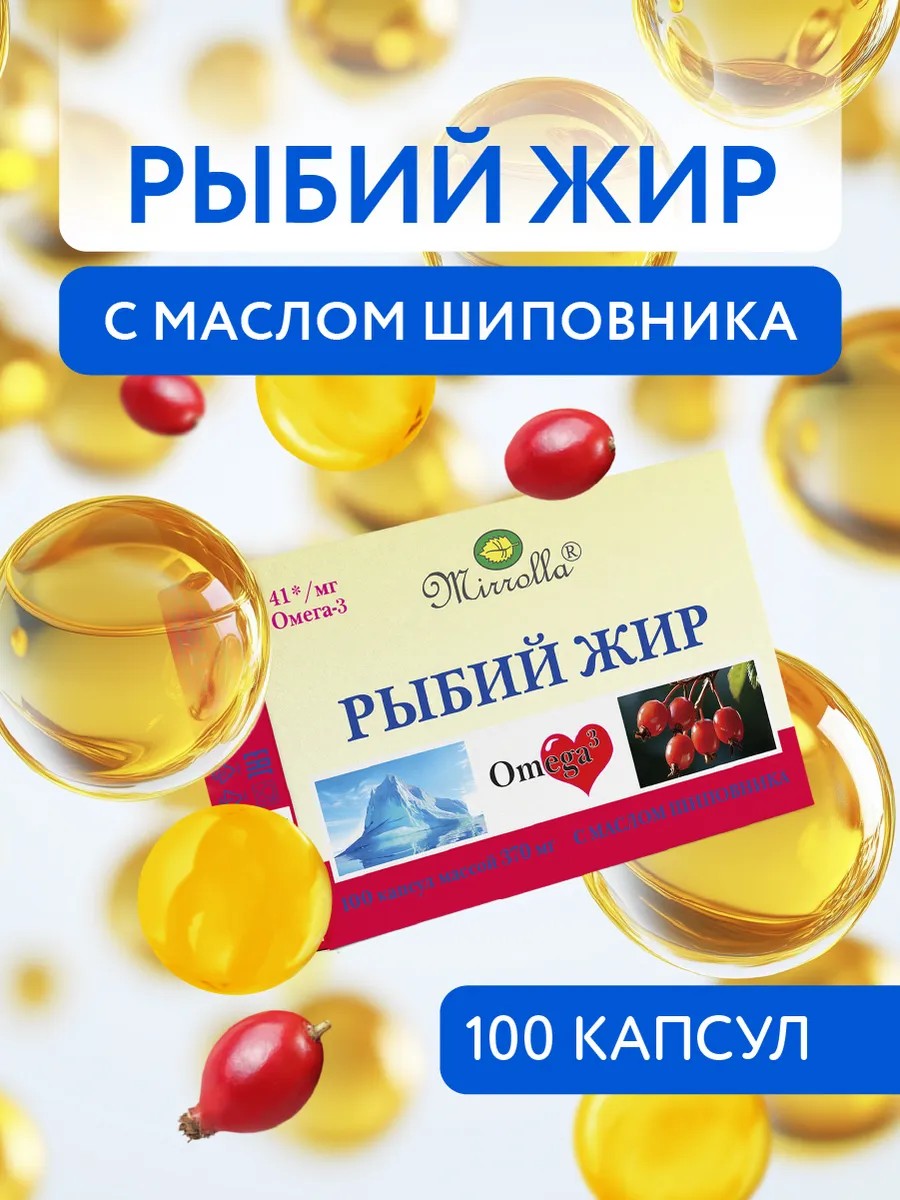 mirrolla Рыбий жир натуральный Омега 3 с шиповником 100 капсул