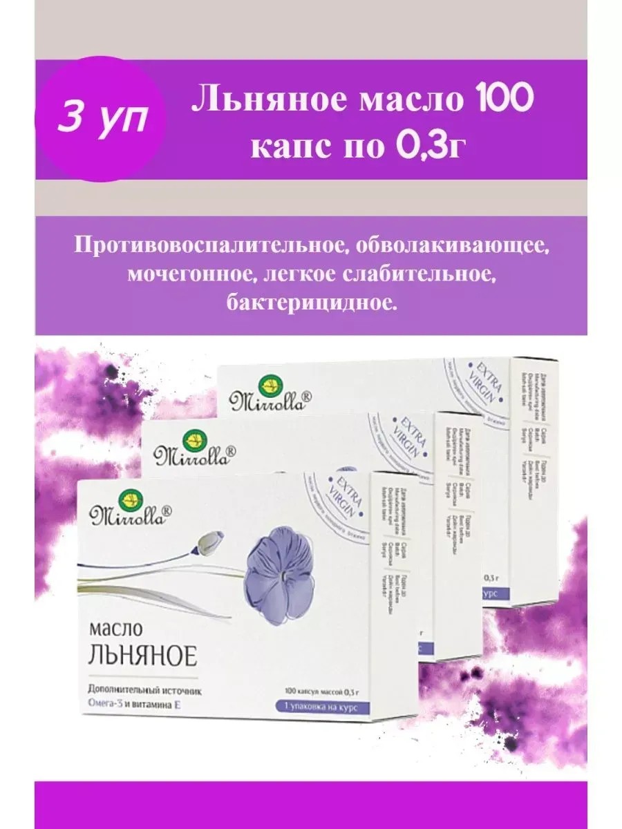 | Комплектация | масло льняное в капсулах по 100 шт. - 2, 3, 4, 5 упаковок на выбор покупателя |