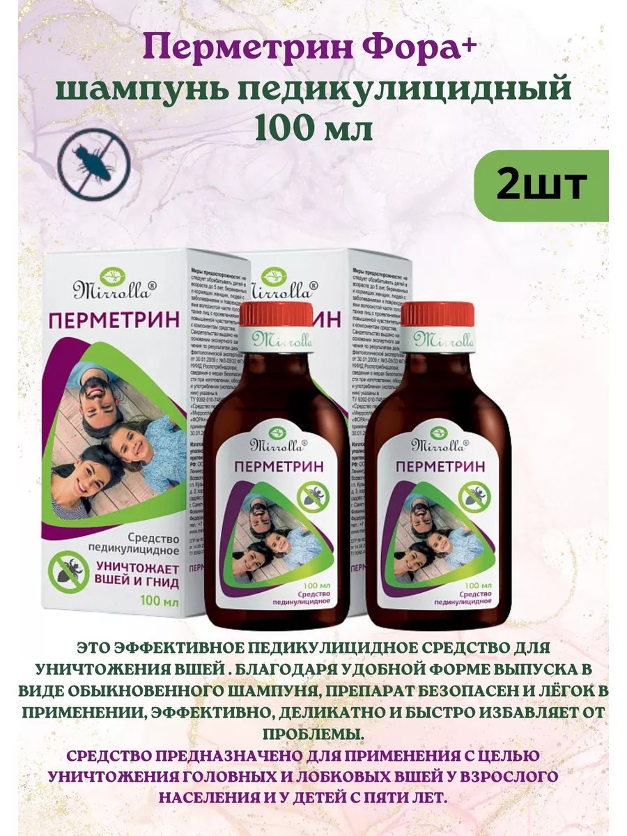 МИРРОЛЛА Перметрин фора+ средство педикулицидное 100мл 2шт