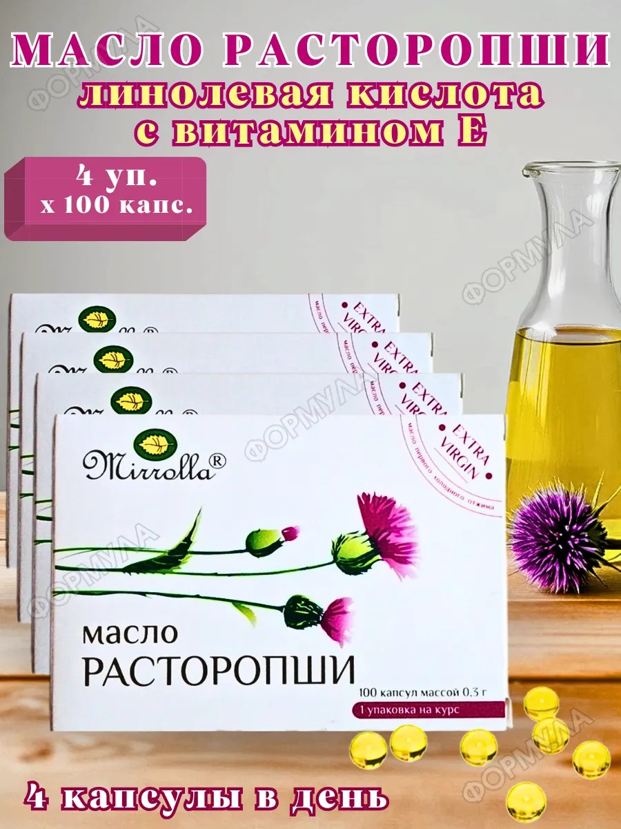 МИРРОЛЛА Масло расторопши пятнистой с витамином Е 100капс*4уп