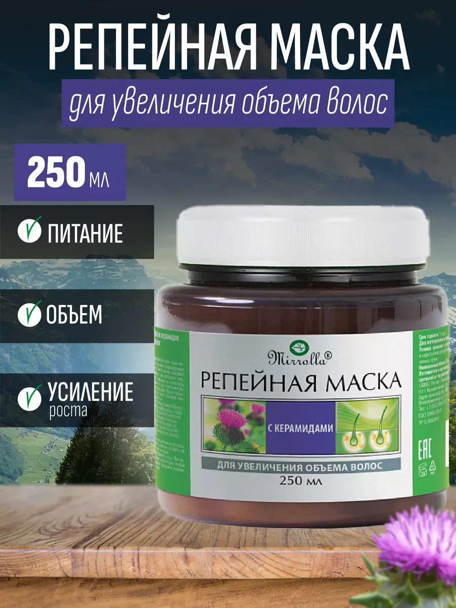 Маска Репейная с с керамидами для роста волос 250 мл - профессиональное средство для ухода за волосами. Увлажняющая формула маски обеспечивает термозащиту и питание волос, способствует их росту и предотвращает выпадение. Идеально подходит для окрашенных волос. Активатор роста волос на голове у женщин, который делает ваши волосы красивыми и здоровыми.