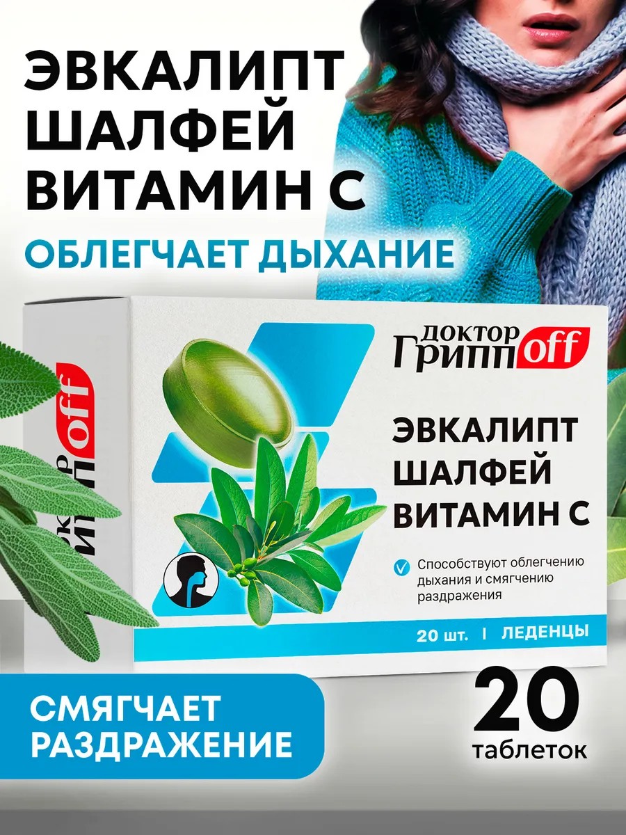 Торговое наименованиеБиологически активная добавка к пище БАД к пище Леденцы Эвкалипт, Шалфей, Витамин С «Доктор ГриппOFF», №20
