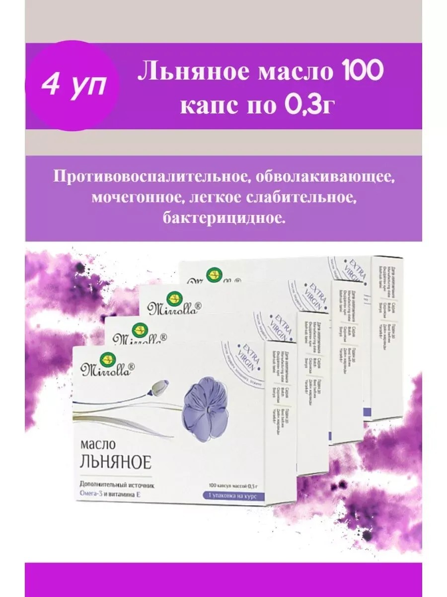 | Комплектация | масло льняное в капсулах по 100 шт. - 2, 3, 4, 5 упаковок на выбор покупателя |