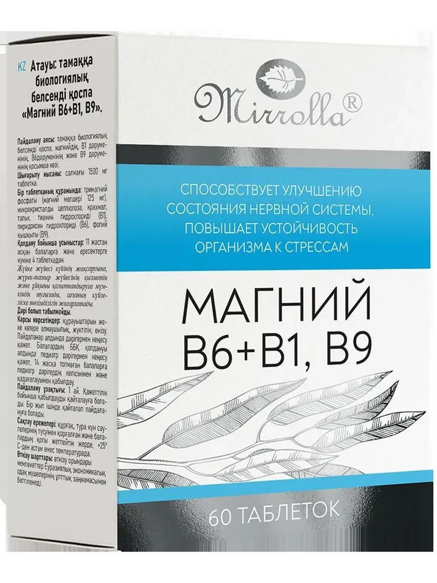 МИРРОЛЛА Магний В6+в1 В9 60 Таблеток По 1350мг