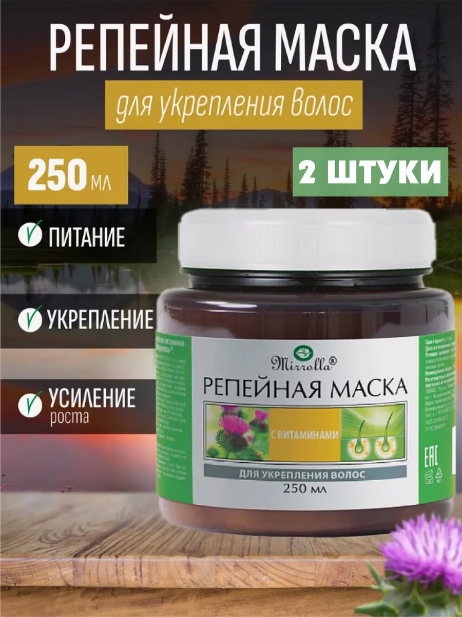 Маска Репейная с витаминами В5 Н А Е для роста волос 250 мл - профессиональное средство для ухода за волосами. Увлажняющая формула маски обеспечивает термозащиту и питание волос, способствует их росту и предотвращает выпадение. Идеально подходит для окрашенных волос. Активатор роста волос на голове у женщин, который делает ваши волосы красивыми и здоровыми.