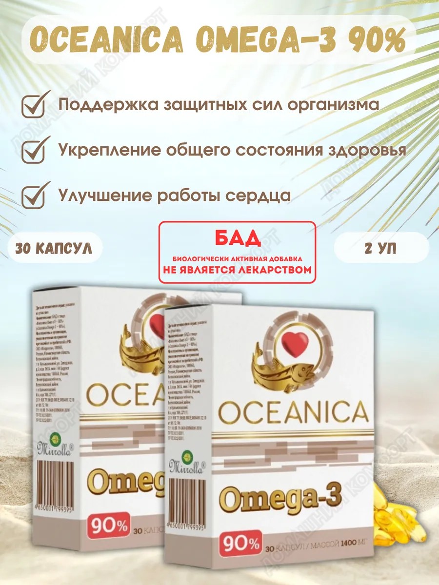 Не упустите шанс улучшить качество своей жизни с помощью Океаника Омега-3. Эта добавка станет вашим верным помощником в заботе о здоровье сердца, мозга и органов зрения и естественной частью вашего ежедневного рациона. Сделайте шаг к активной и длительной жизни вместе с Океаника Омега-3!