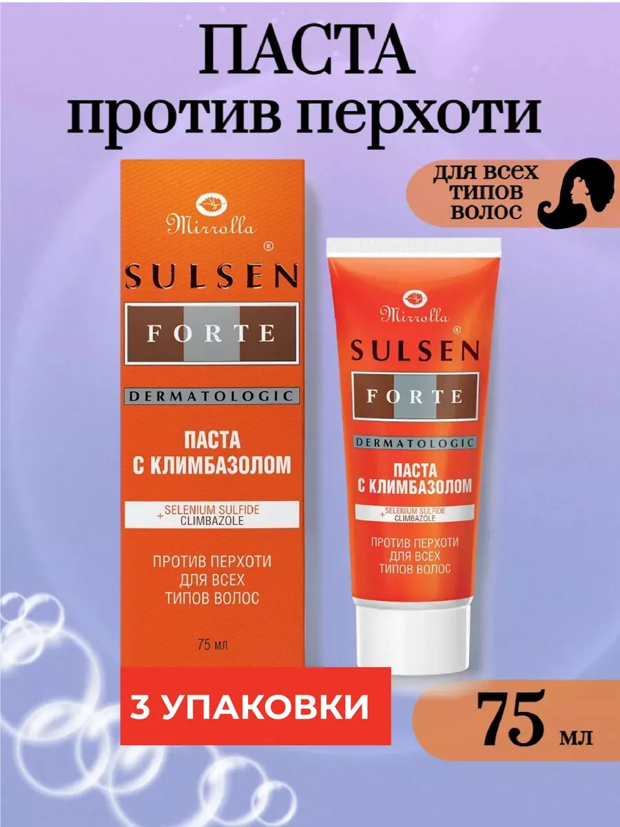 Not every medicated shampoo can get rid of dandruff; Sulsen Forte paste with climbazole improves the condition of different types of dandruff: oily, liquid, dry, as it can: normalize the functioning of the sebaceous glands; inhibit the growth of fungi that often occur with dandruff and seborrhea.