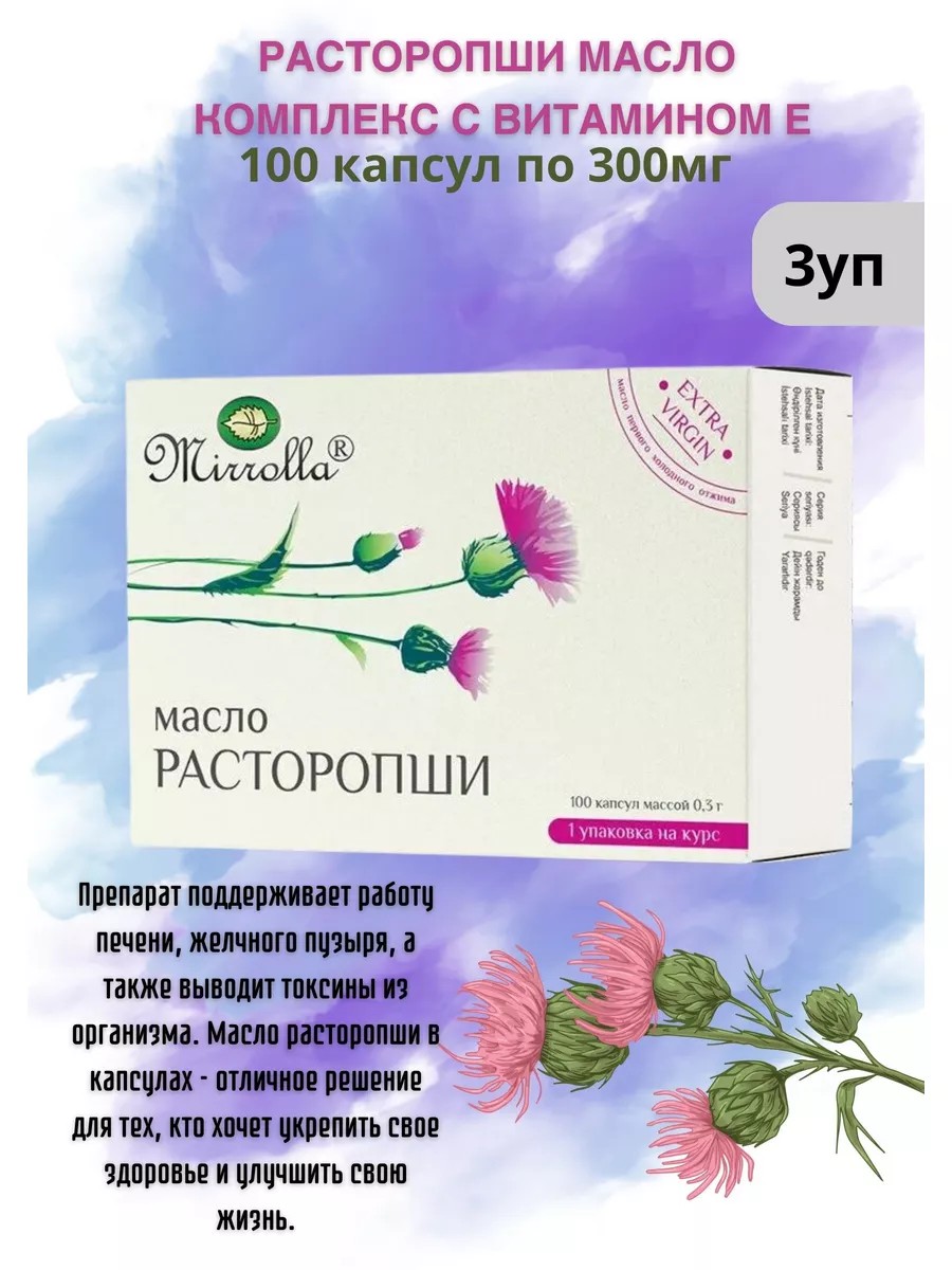 | Комплектация | Масло расторопши в капсулах 100шт по 0,3г-3шт |