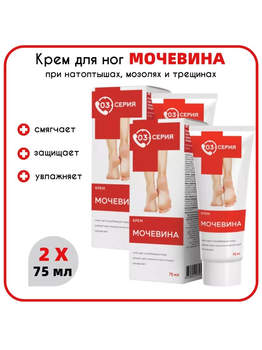 Серия 03 Крем мочевина для ног 75 мл решает проблемы загрубевшей кожи. Мочевина, иначе карбамид, увлажняет и смягчает кожу за счет способности собирать вокруг себя молекулы воды. Крем для ног при натоптышах и трещинах «Мочевина» «Серия 03» помогает снять раздражение, питает и защищает эпидермис от трещин и сухости. Кроме мочевины крем содержит экстракты чистотела и коры дуба, которые способствуют снятию усталости и тяжести в ногах. СПОСОБ ПРИМЕНЕНИЯ: Наносить на предварительно очищенную кожу в проблемных местах круговыми движениями 2 раза в день до полного впитывания.
