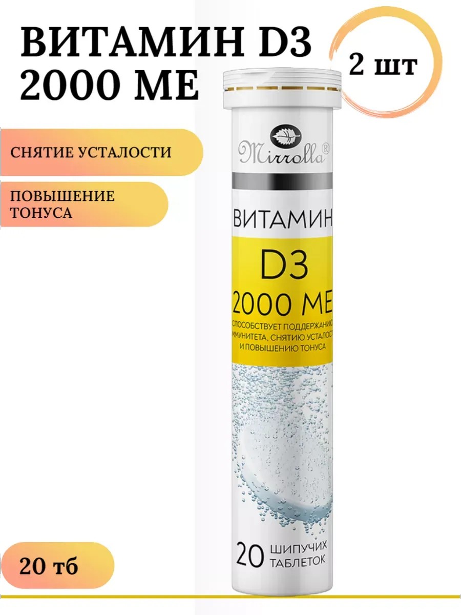 МИРРОЛЛА Витамин D3 Д3 2000 МЕ для иммунитета 20 шипучих тб /2 уп