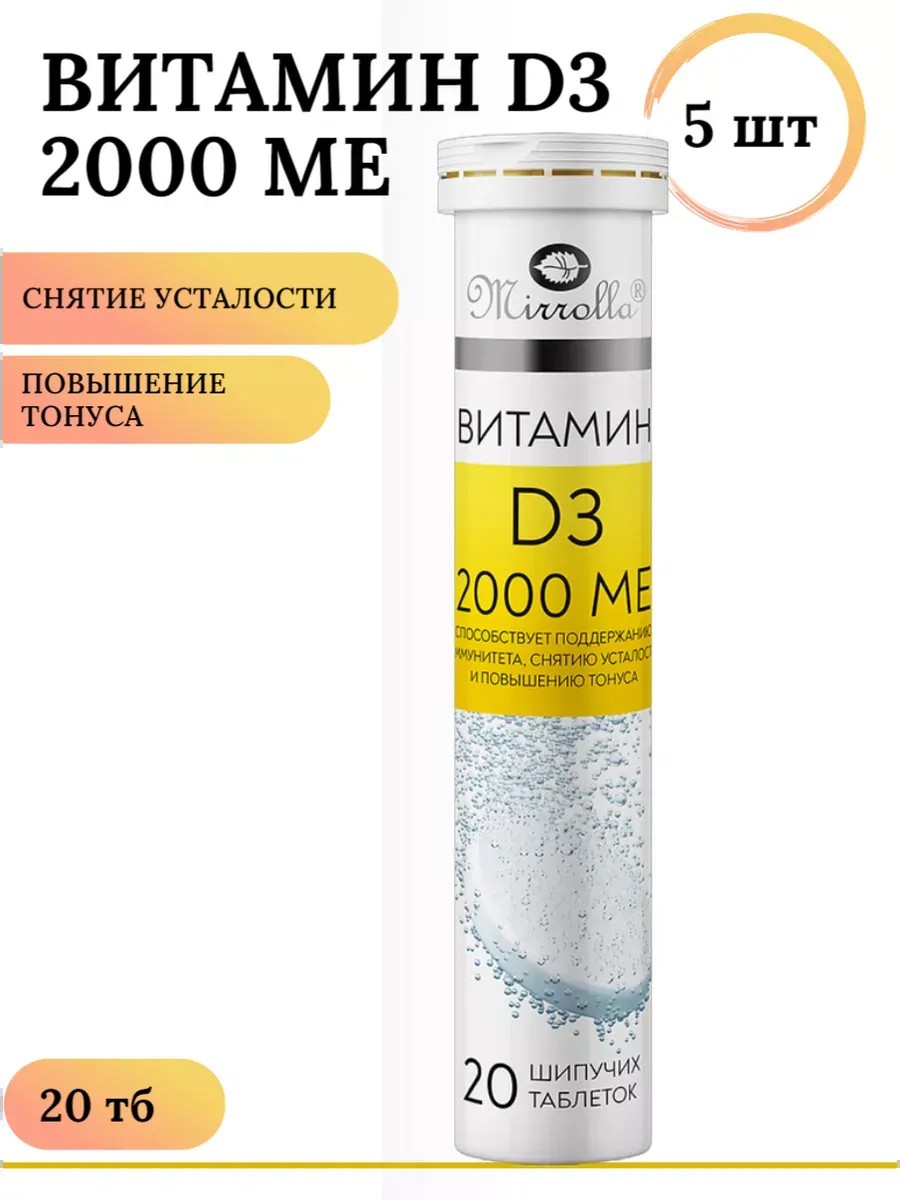 МИРРОЛЛА Витамин D3 Д3 2000 МЕ для иммунитета 20 шипучих тб /5 уп