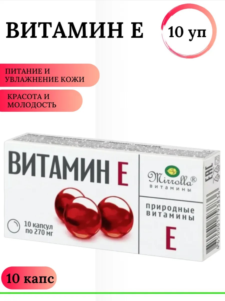 МИРРОЛЛА Витамин Е альфа-токоферол ацетат 10 капс/10 уп