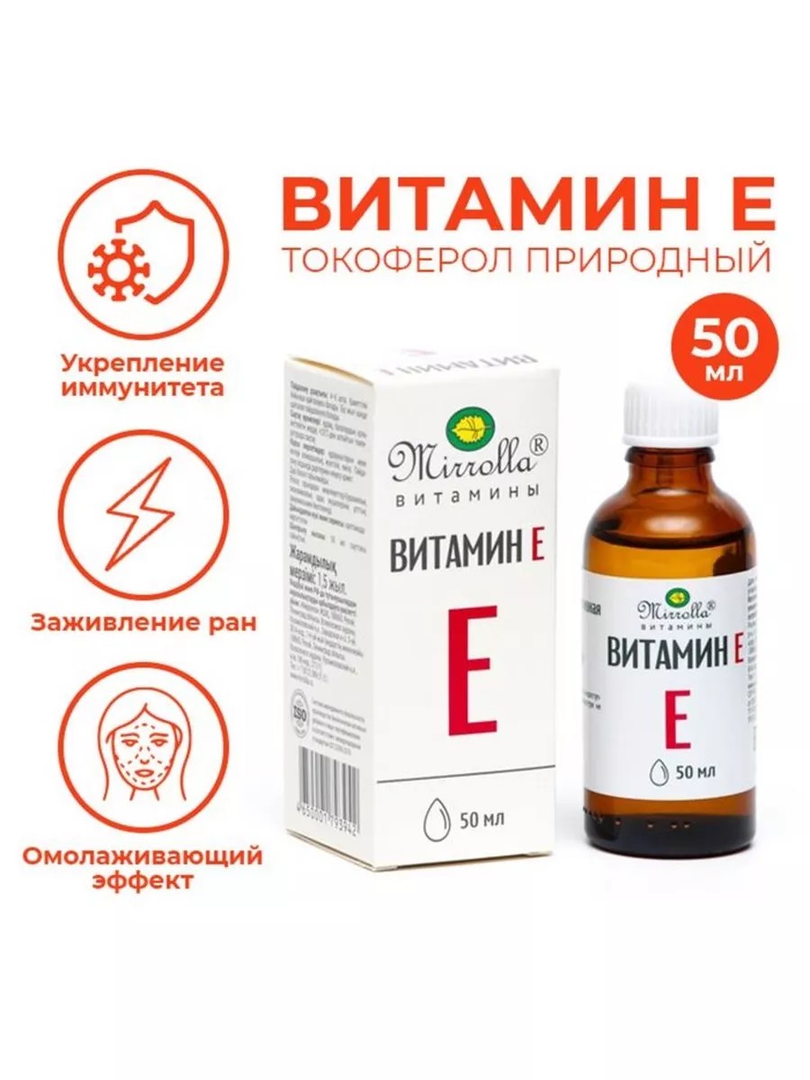 | Комплектация | Витамин Е Mirrolla, токоферол природный, 50 мл |
